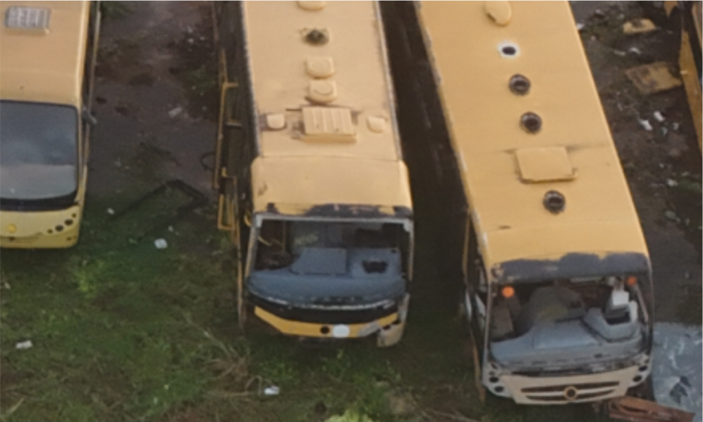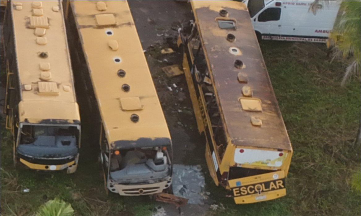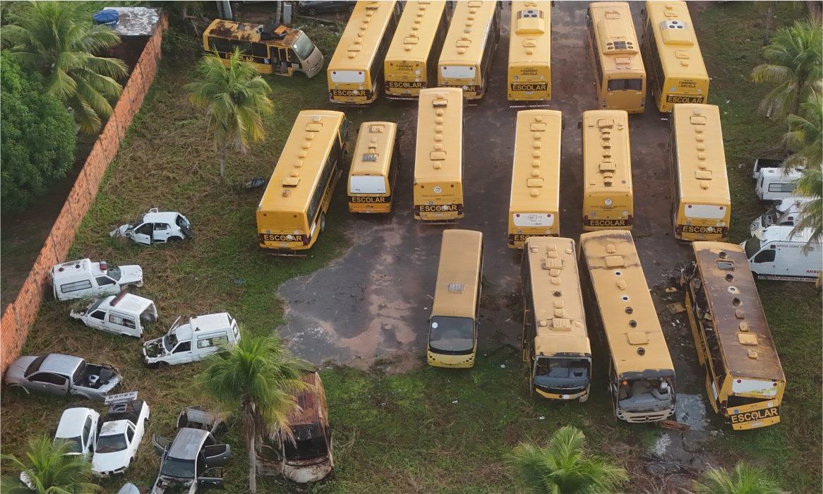 Dezenas de Veículos Abandonados: Ônibus doados em gestões e convênios anteriores que hoje servem apenas como depósitos de ferrugem e ninhos de ratos na garagem da educação.